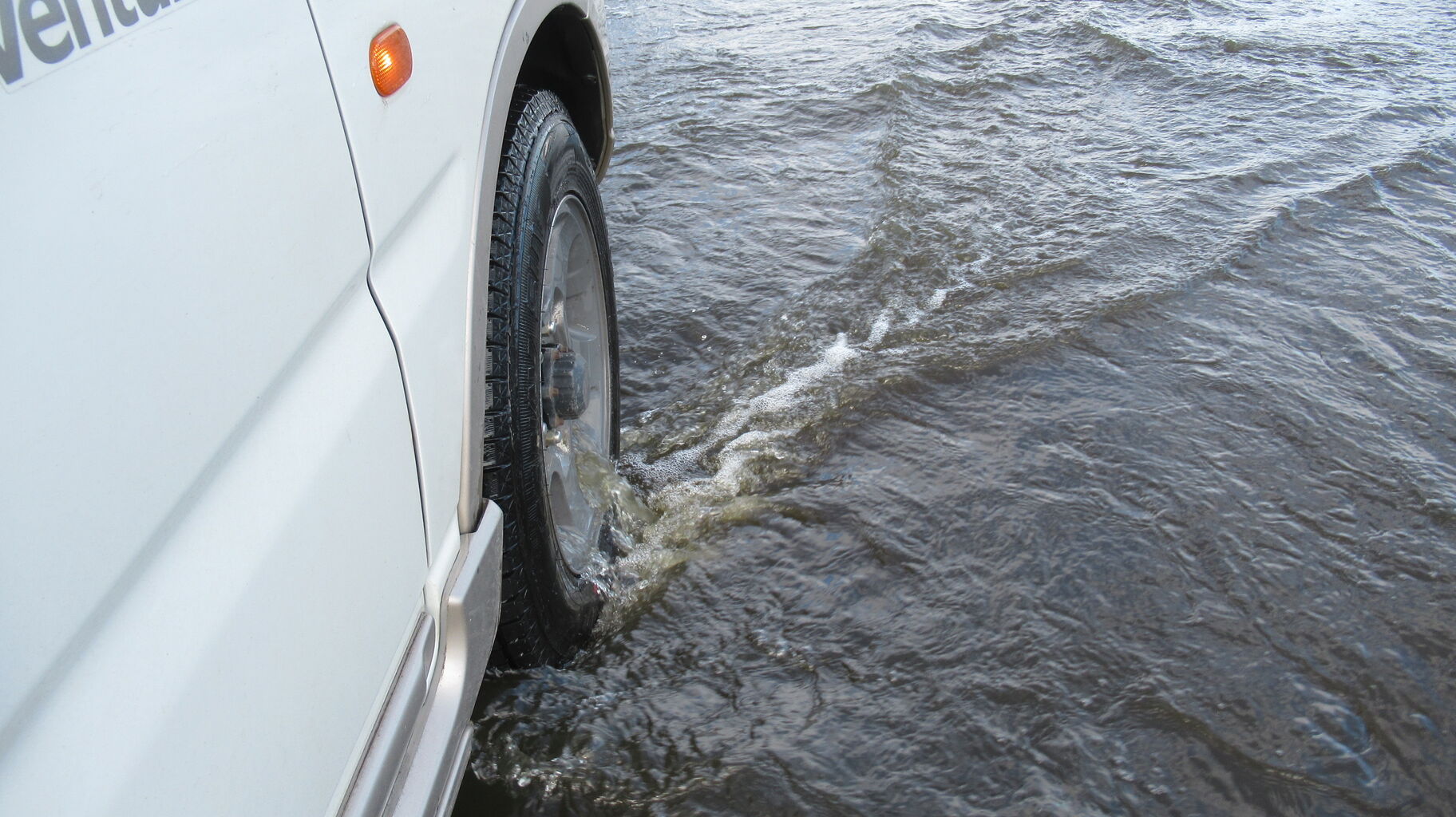 ホイールのスポークの間から水流れ出てる