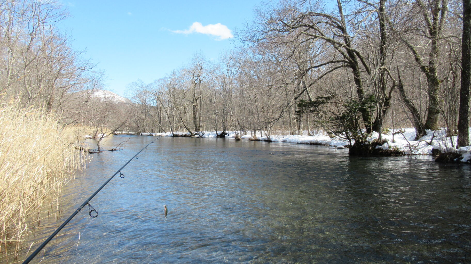 ここはけっこう氷あいてますね!ちょっと竿を振ってみよう~