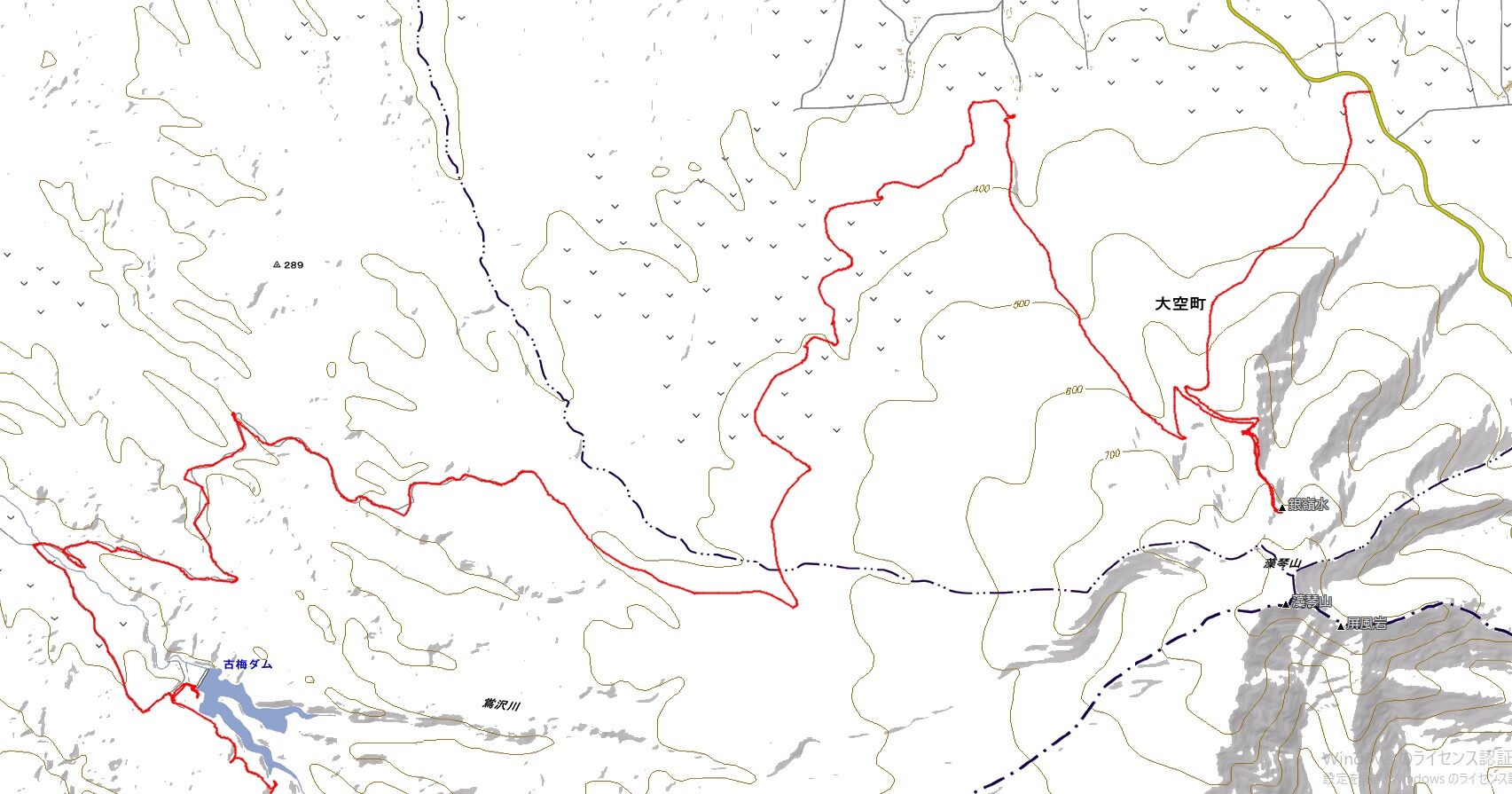 藻琴峠の麓から古梅ダムまでの経路はこんな感じです