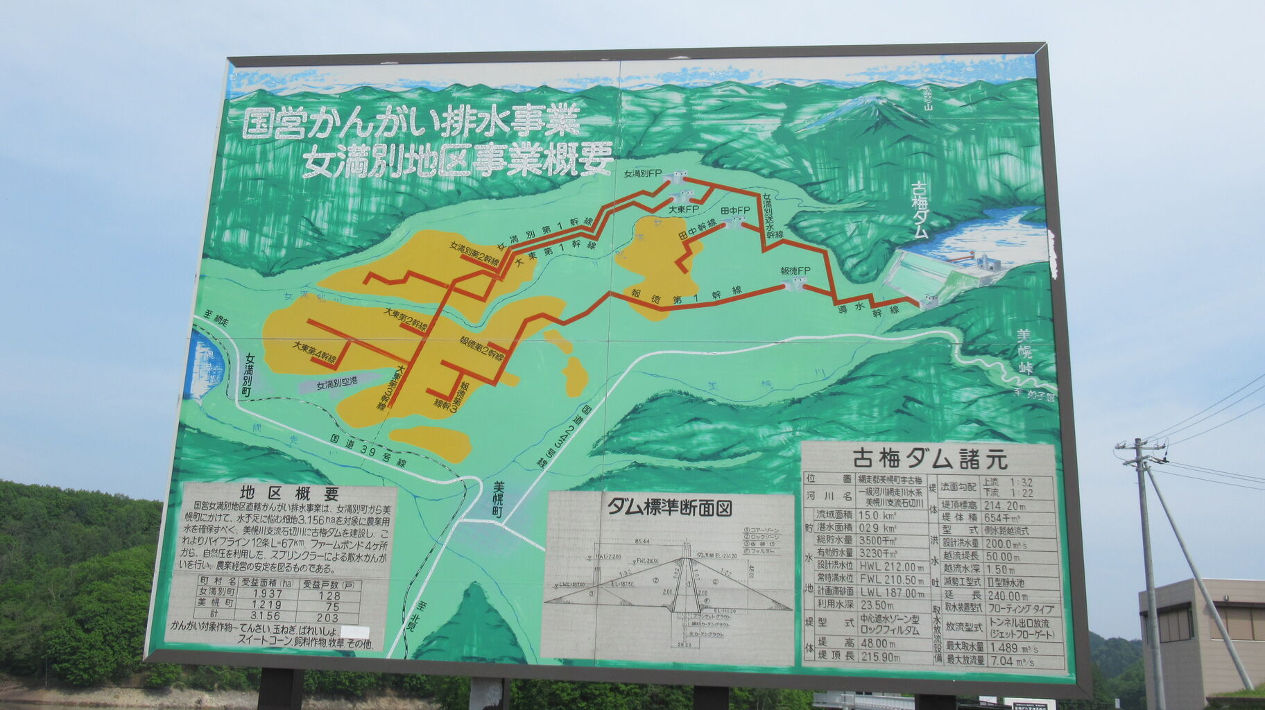日並林道は最終的に美幌町にある古梅ダム付近に抜けます。