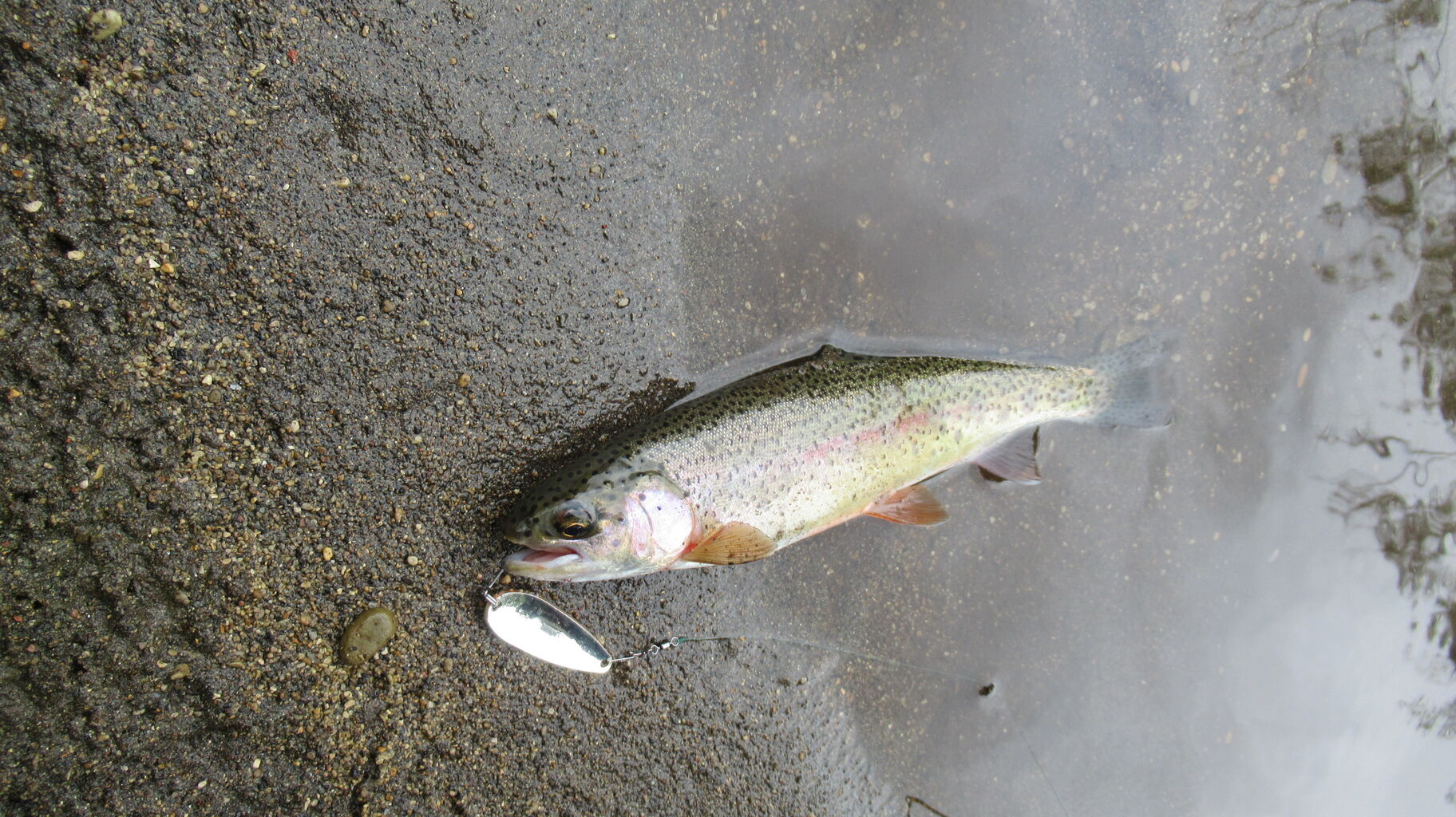小ぶりなニジマスが相手をしてくれて坊主は回避です