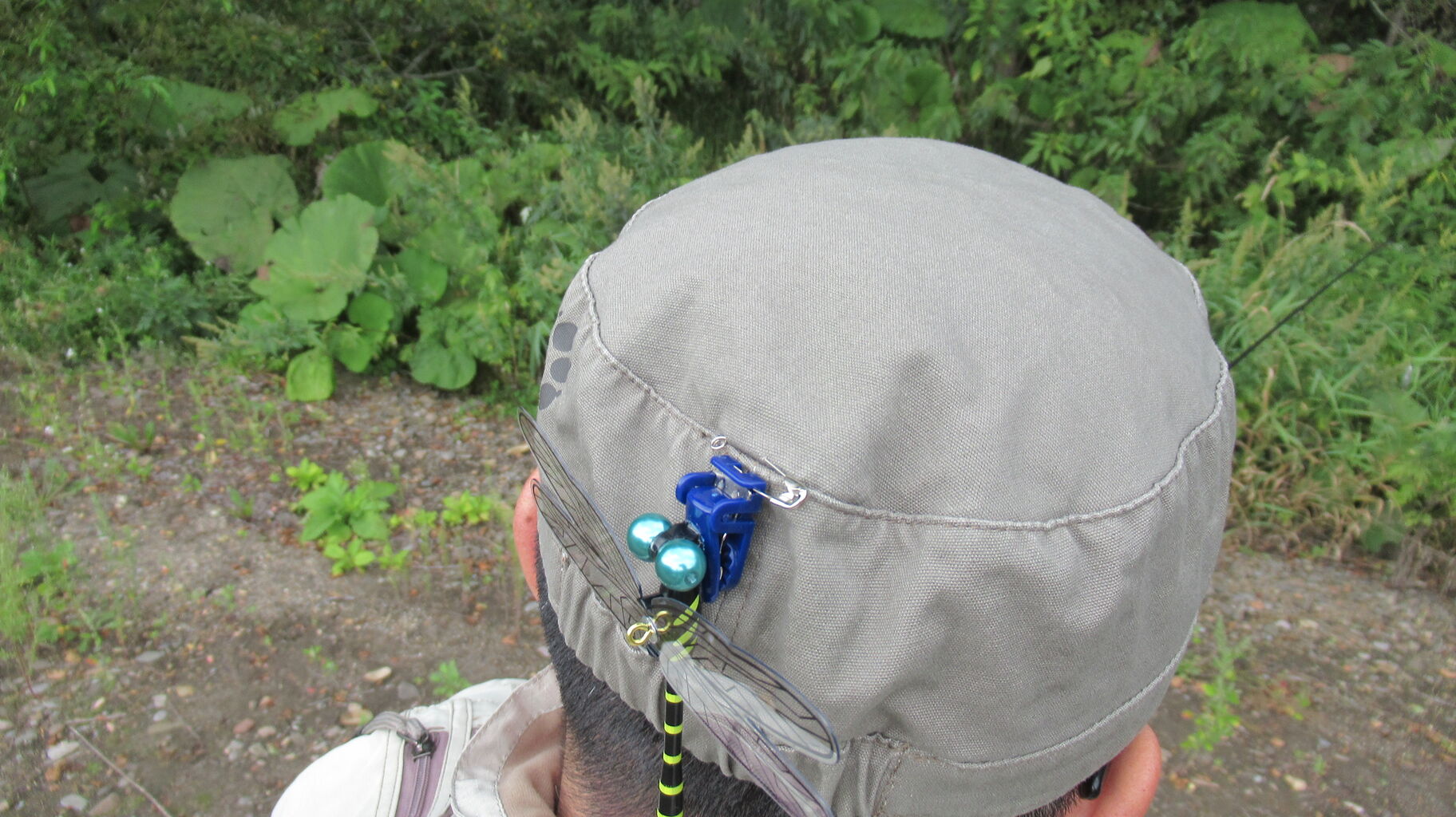この日は気温も高めで虫も出ていそう、少し時間ができたので近場の川へおにやんま君装備で魚釣りへ