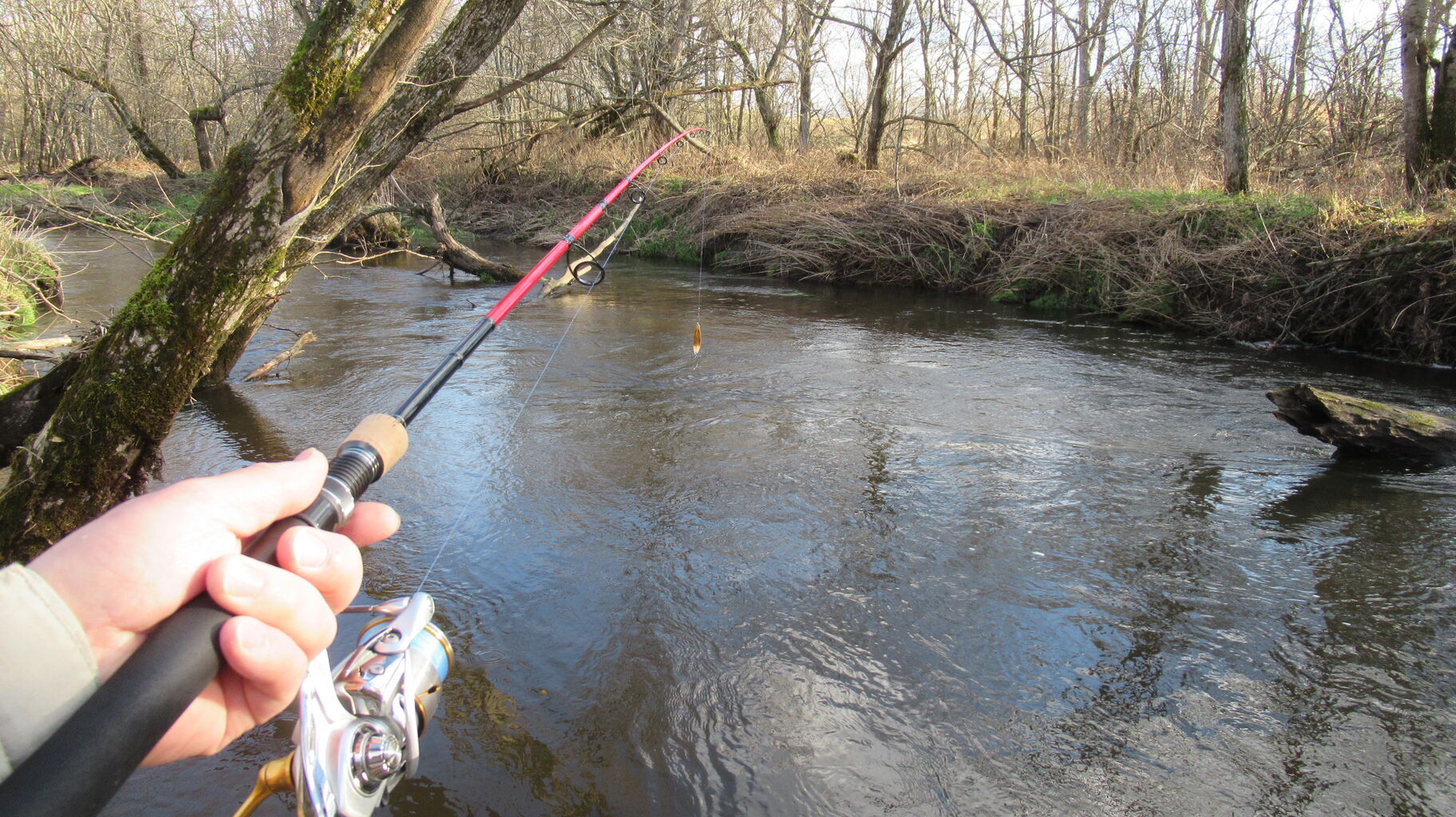 こんな感じで竿を振り回していても全然手が凍えません