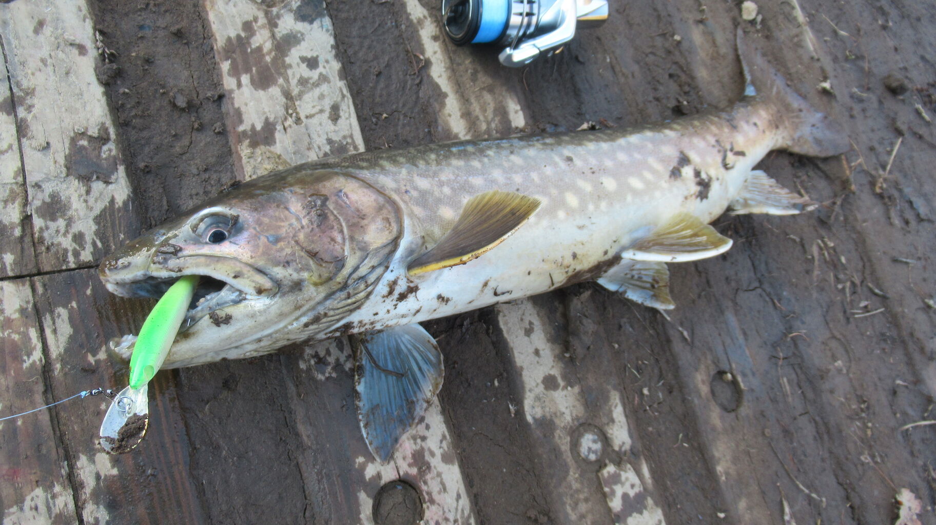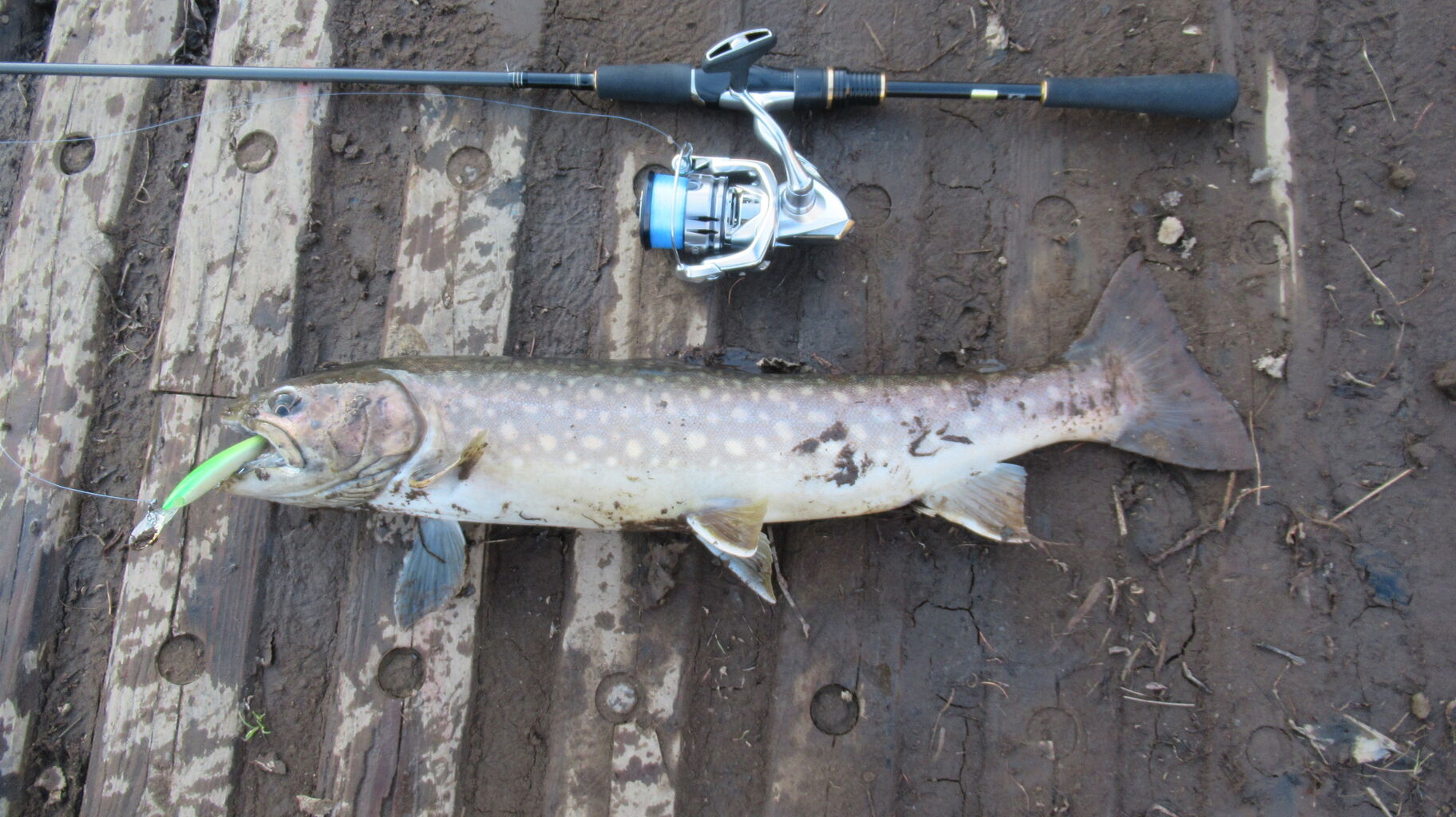おおー!?なんだなんだ!?と竿を曲げた獲物は良いサイズのアメマスでした
