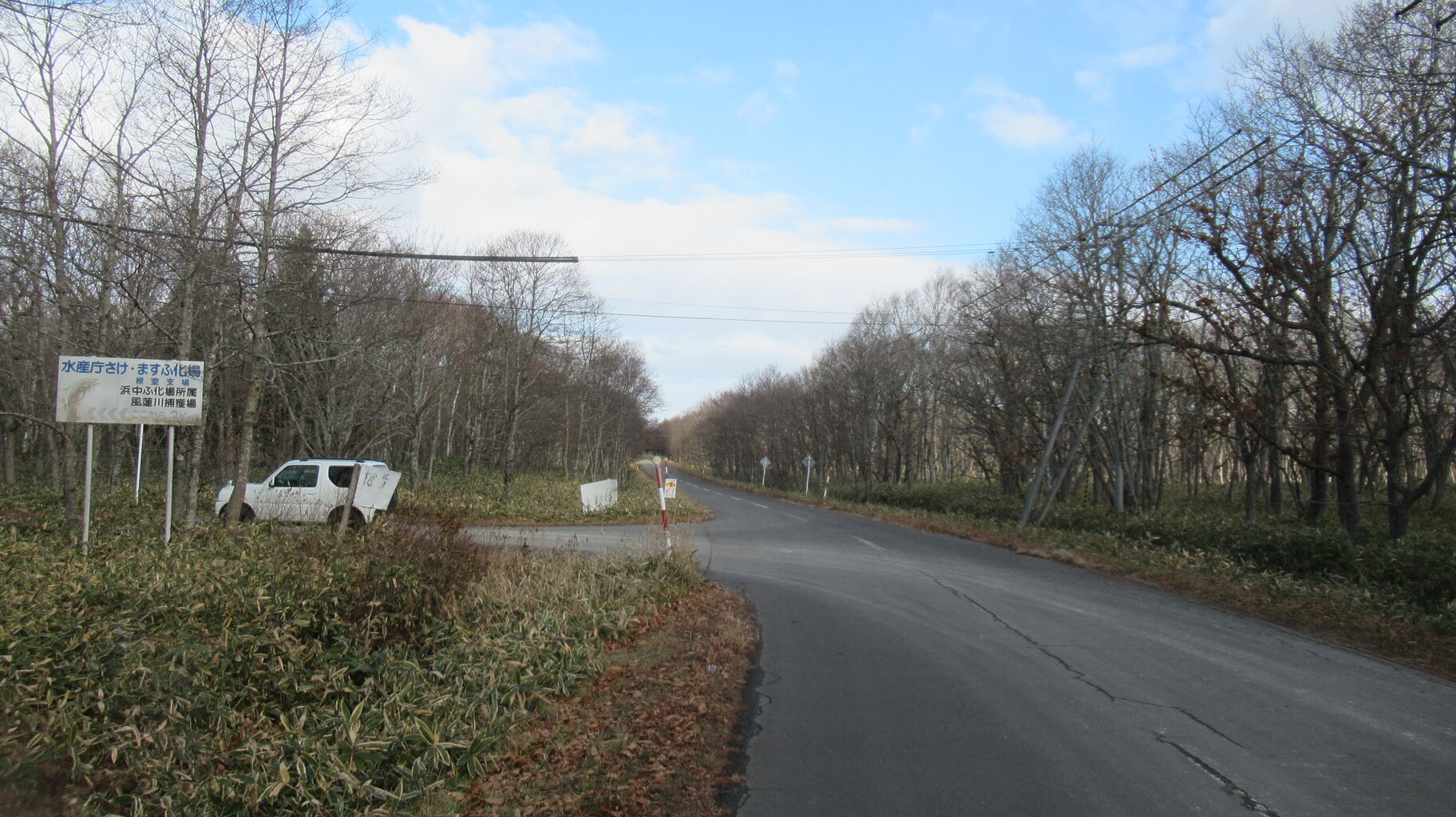 根室市の槍昔地区を通ってさけます孵化場方面入り口へ