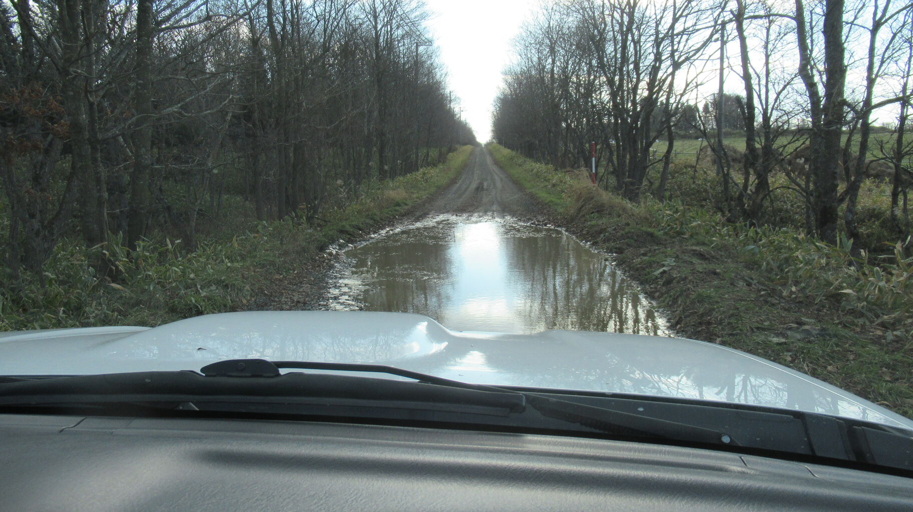 道中にはどうあがいてもかわせない大きな水たまりも