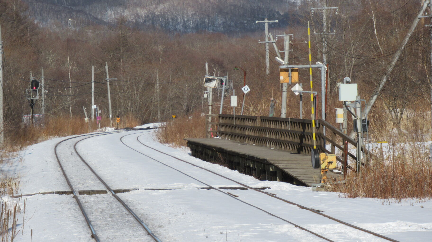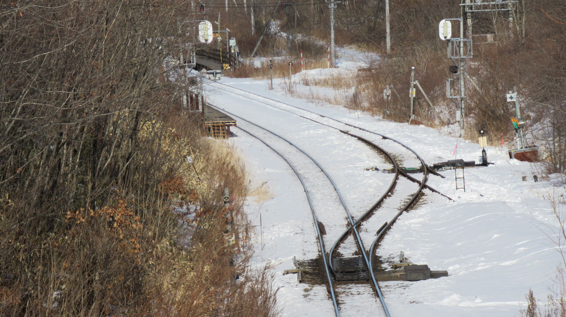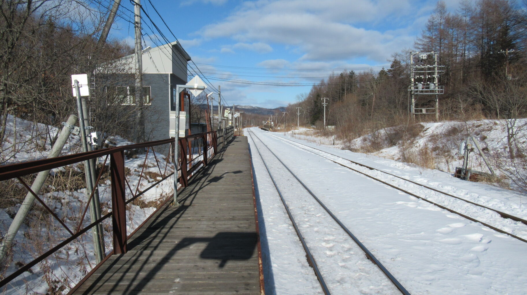 跨線橋の上から東側釧路方面、古瀬駅のホームがチラっと見えますね