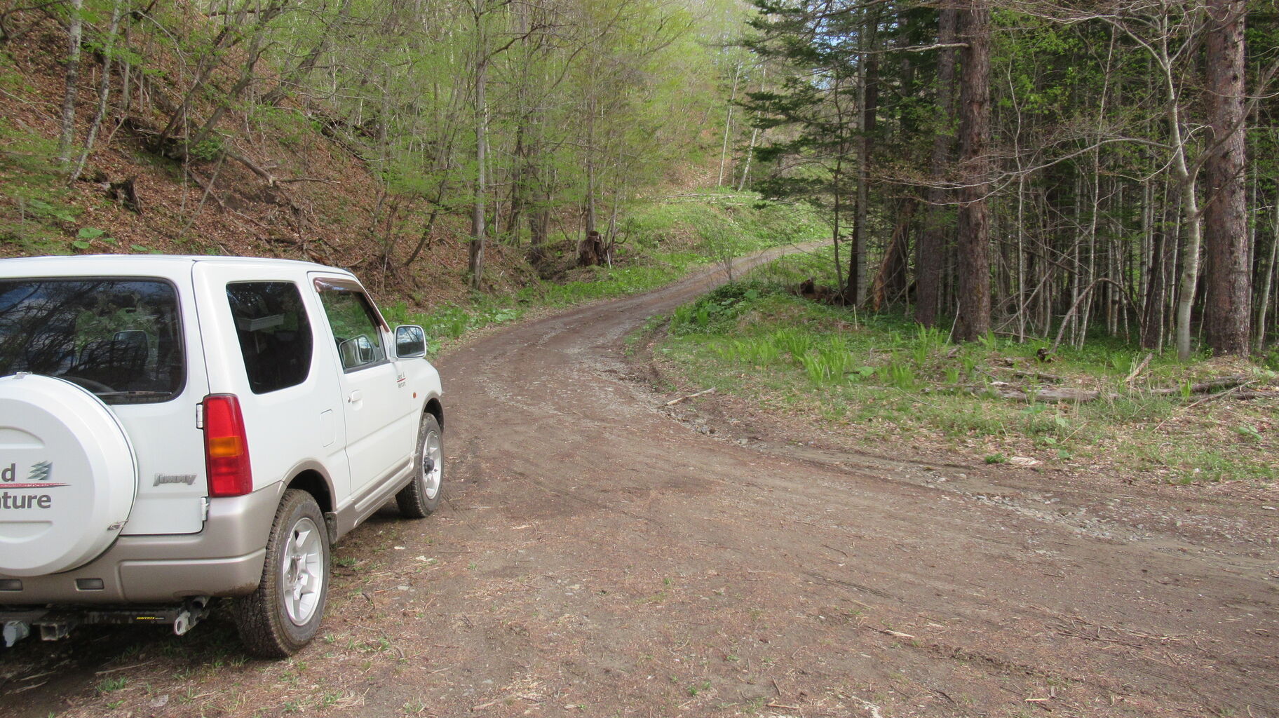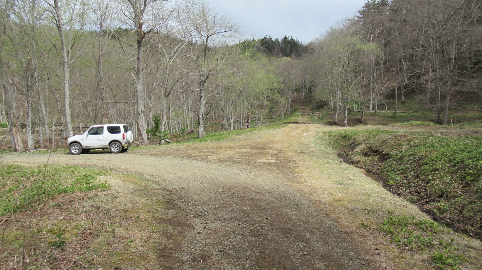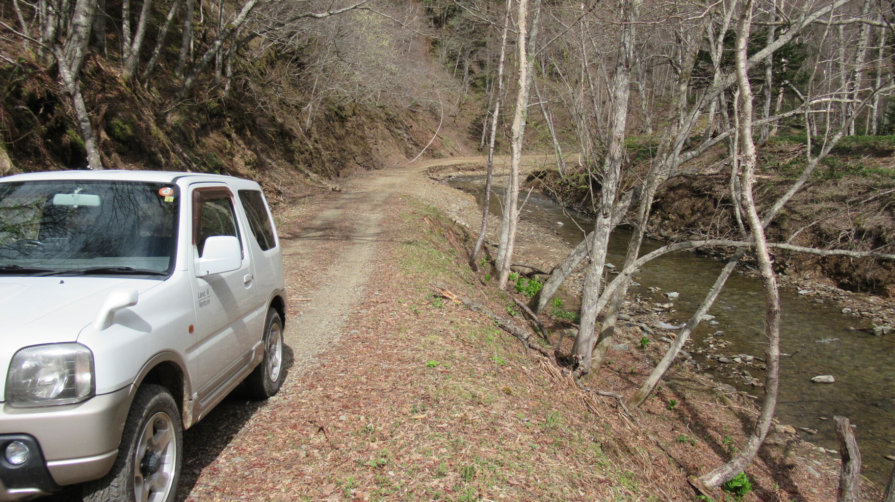 湖までの残りの林道は雪解け水や雨水で多少削られているところはあったものの