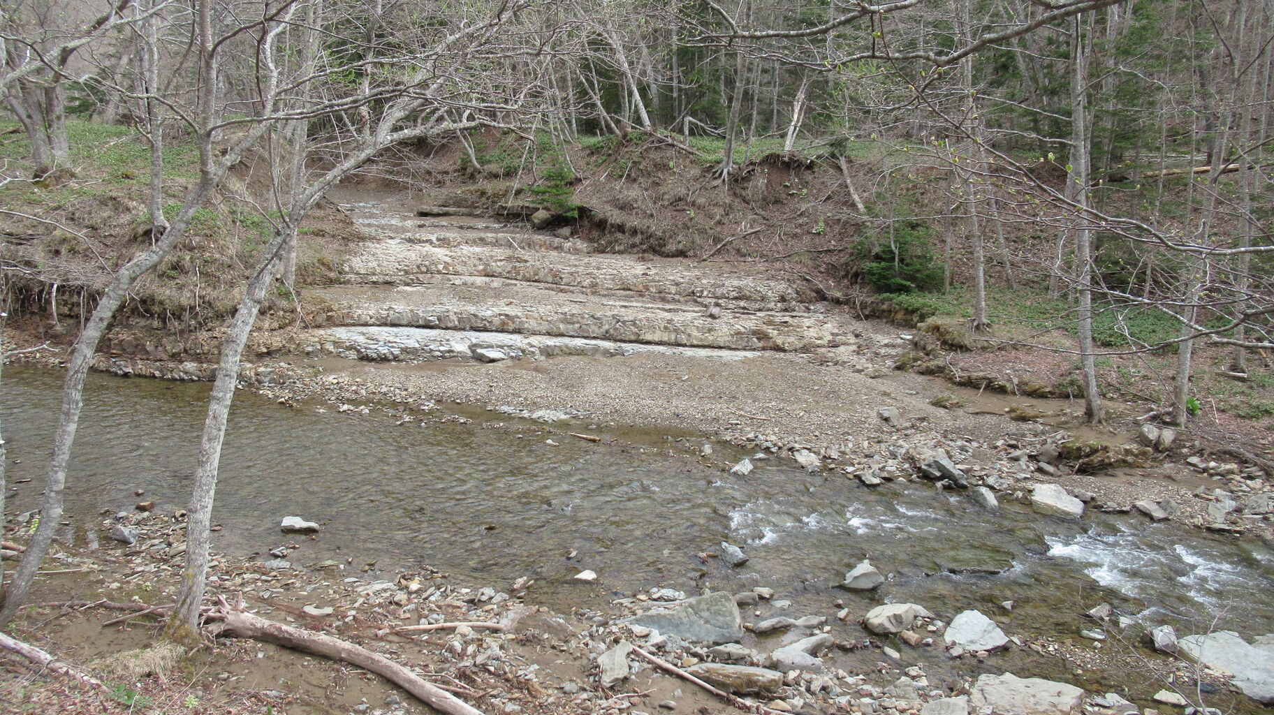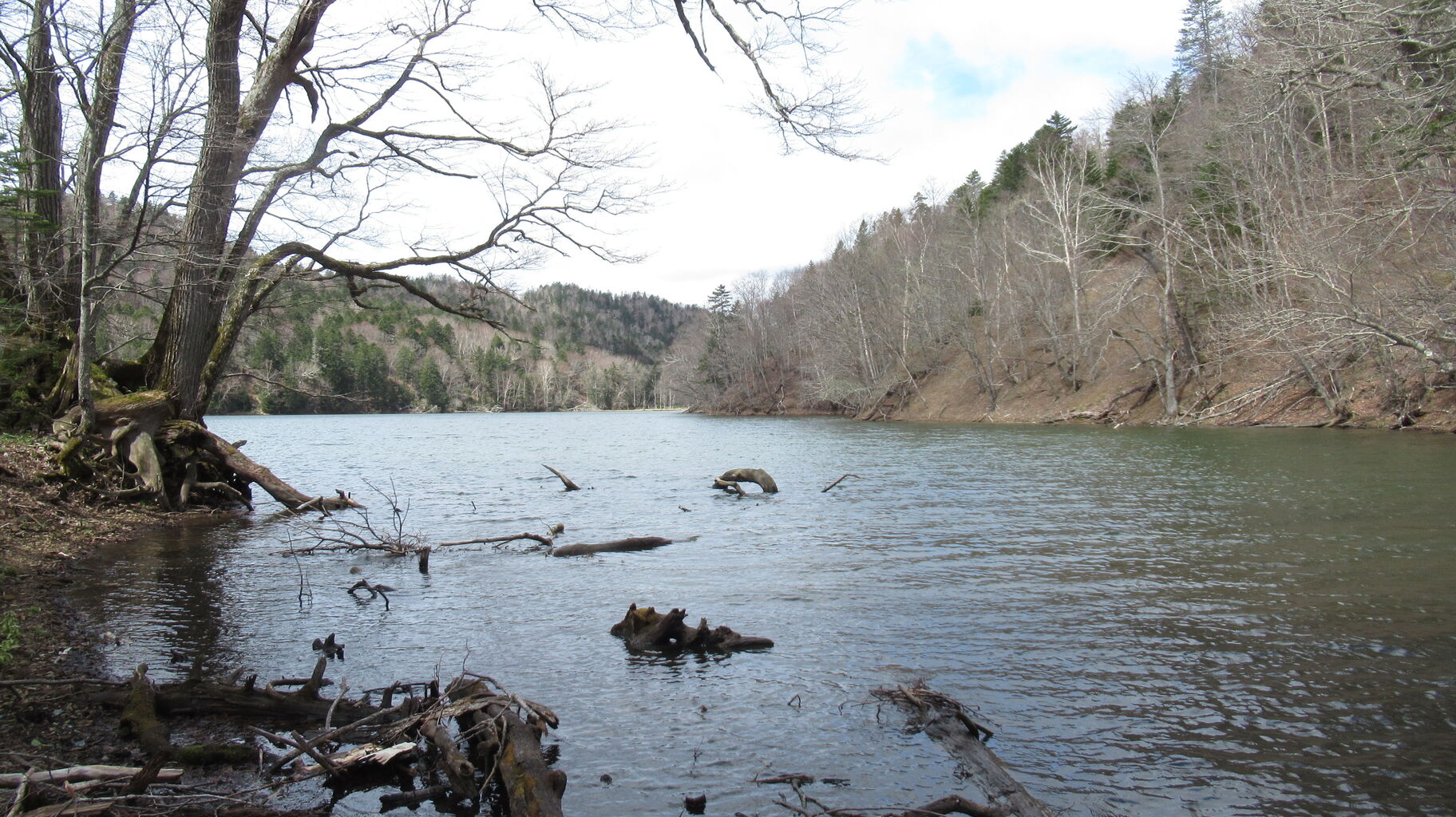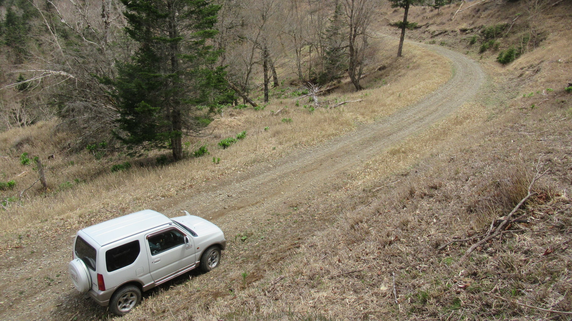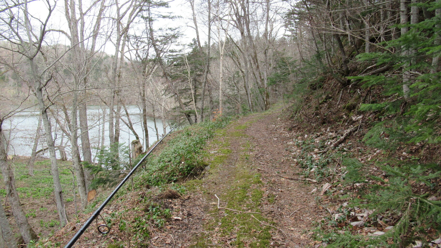 湖までの残りの林道は雪解け水や雨水で多少削られているところはあったものの