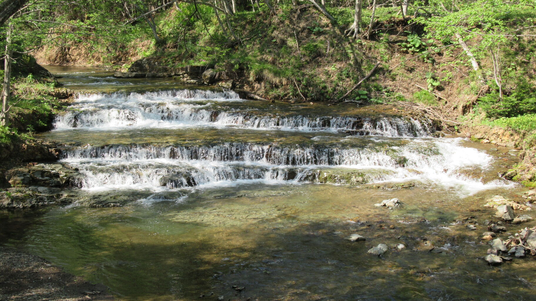 見事な岩盤の滝!