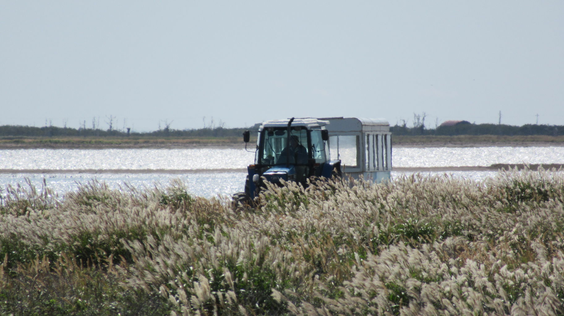 ネイチャーセンター近くにくるとちょうどトラクターバスがトドワラ方向から帰ってきました。