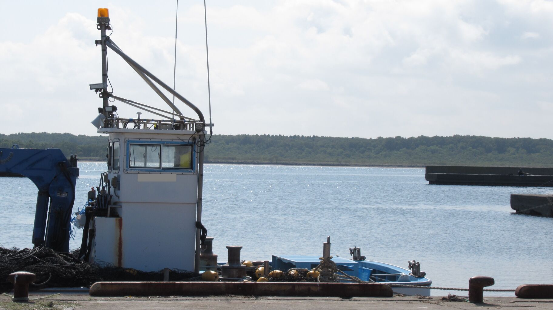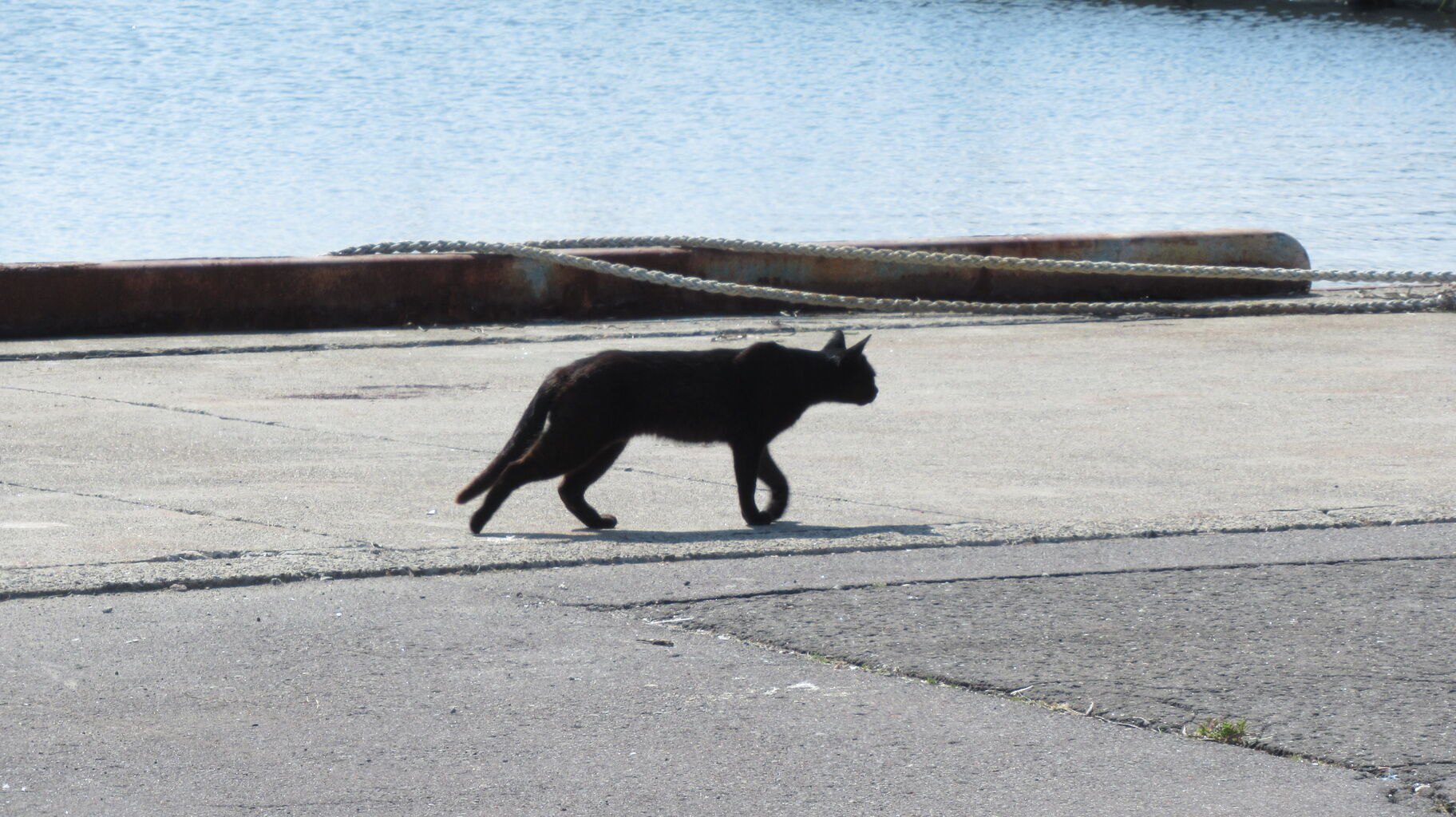 まだ風が肌寒い頃、いつもの港へ魚釣りに行くと黒い鳥の群れが水面でゆらゆらしていました