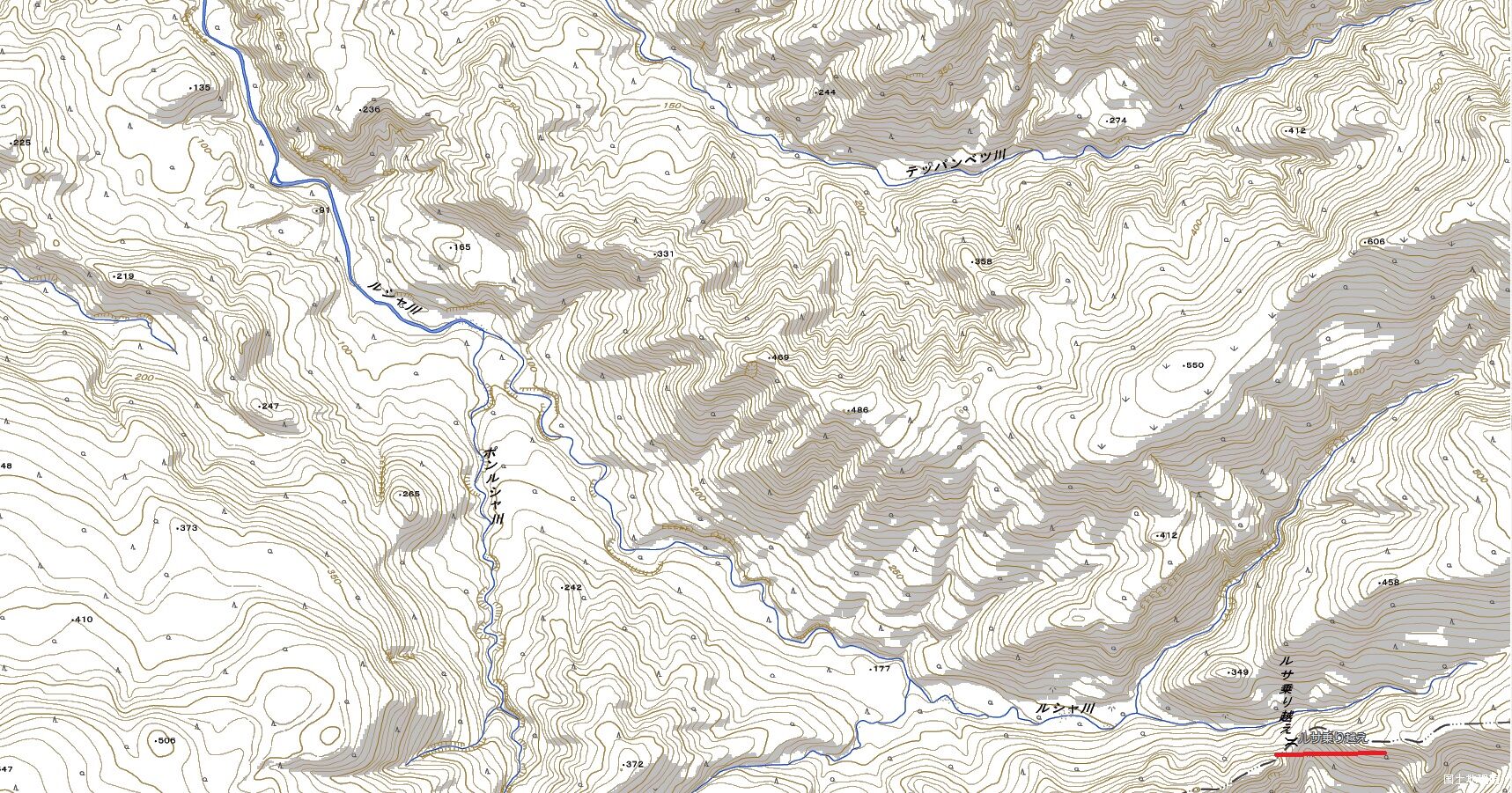 等高線をたどるとルサ乗り越えの標高は270~280mの間みたいです、そんな低い場所あったんだ・・・