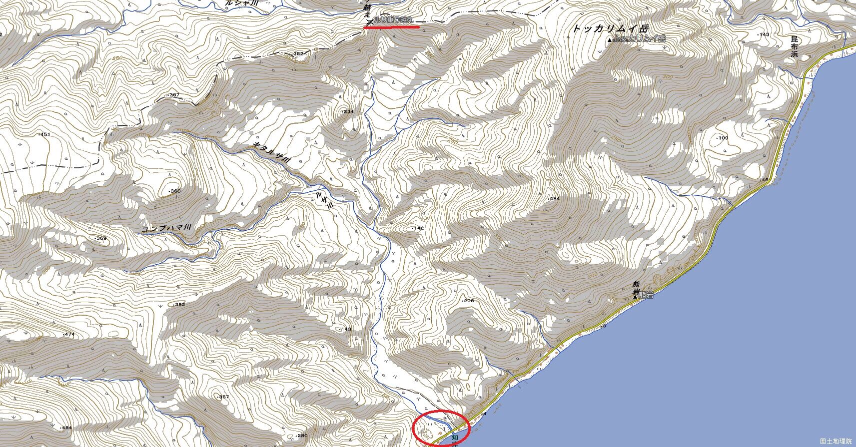 ルサ川の河口・ルサフィールドハウスのある場所から沢沿いがルートだったんでしょうね