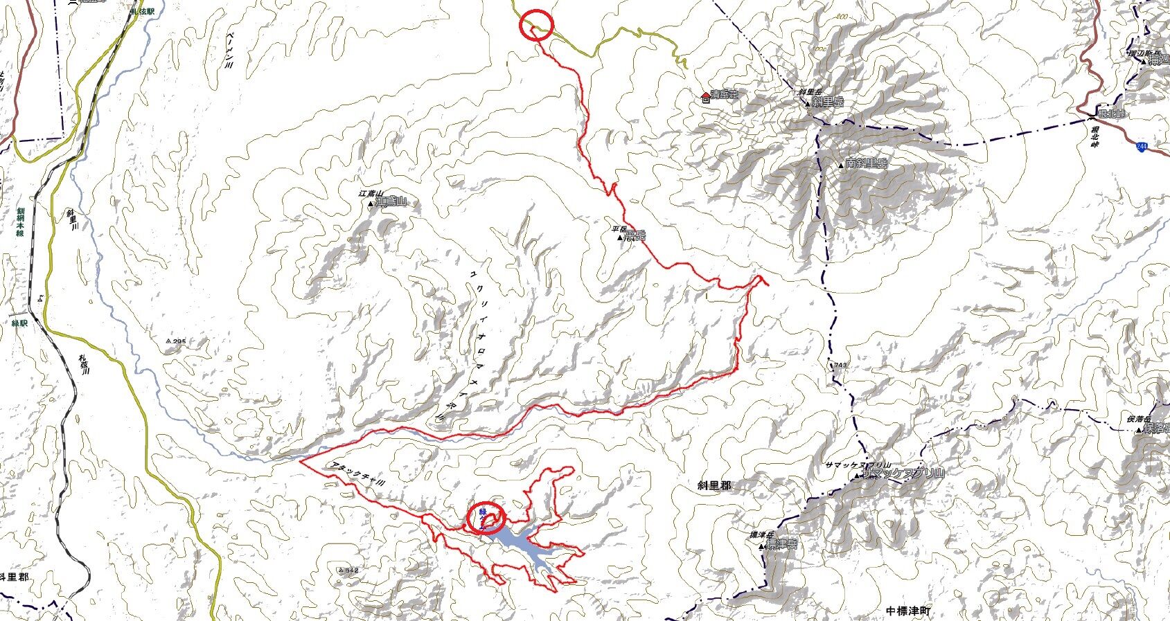 この枝道ルート、標津岳の比較的なだらかな丘陵線をグルっと登って降りる