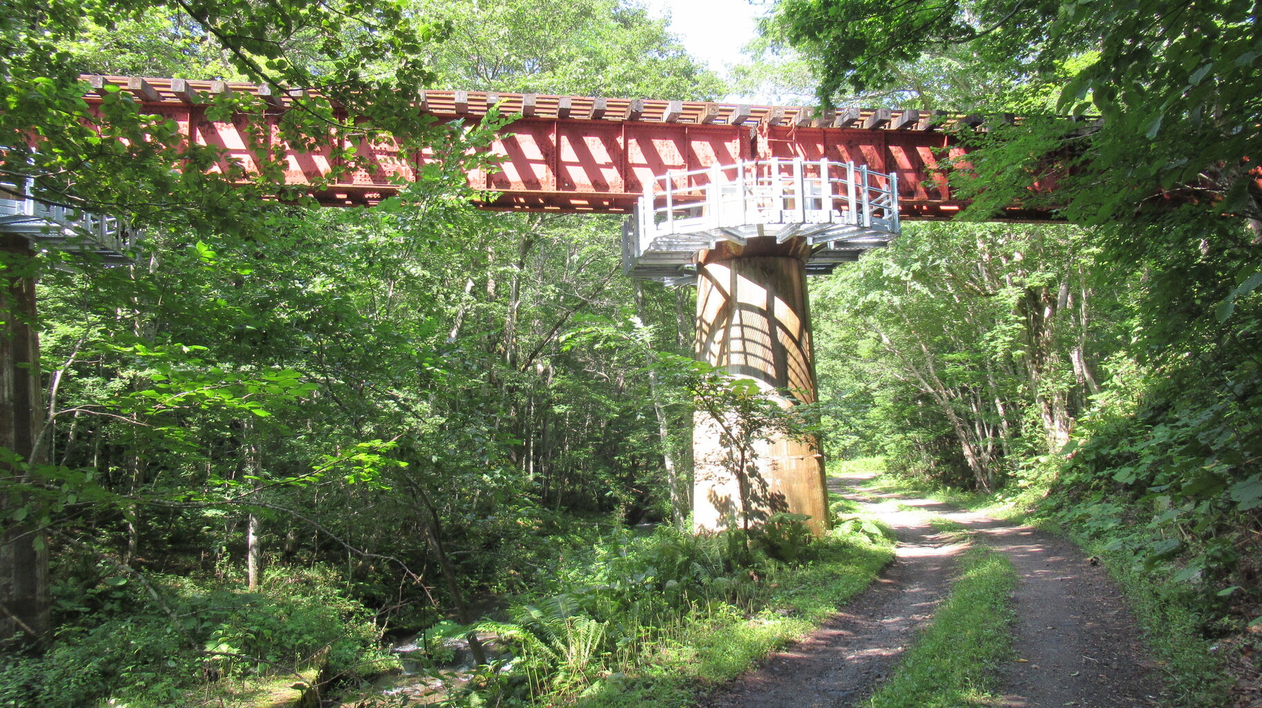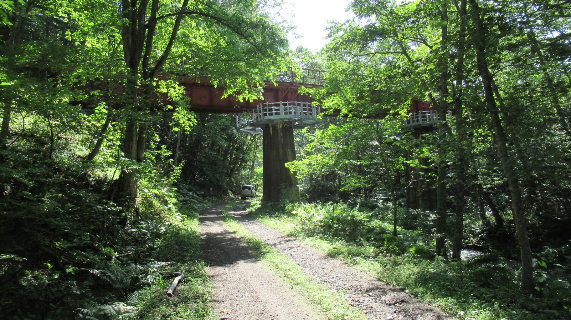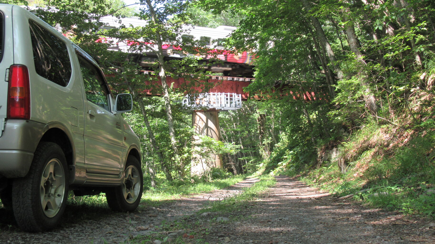 久しぶりにあそこの林道を跨いでいる鉄橋の列車見たいな~