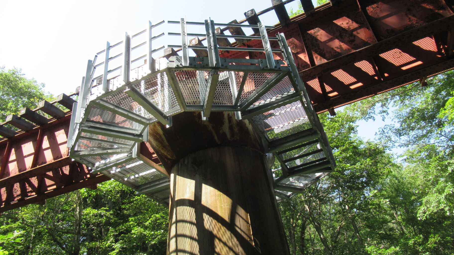 鉄橋の橋脚には追加設備の足場が設置されてますね